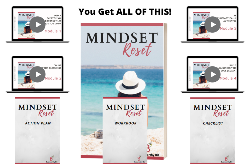 This quick and easy guided-study course will walk you through meeting your authentic self, getting past harmful habits, and pushing the reset button on your business (and ultimately, your life). By taking a quick pause to re-assess a few things and get your mindset right, Mindset Reset will help you finally start to love being your own boss again!